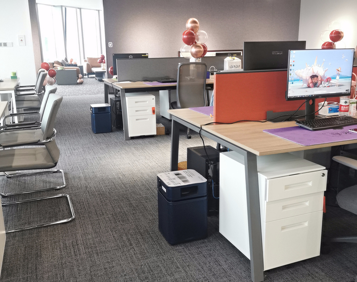 杭州市濱江區某集團公司辦公室除甲醛租賃凈化器,在網上找到我們美國奧司汀空氣凈化器,說是以前在朋友公司聽說過奧司汀品牌,覺得除醛效果好,就找我們租了26臺空氣凈化器。
